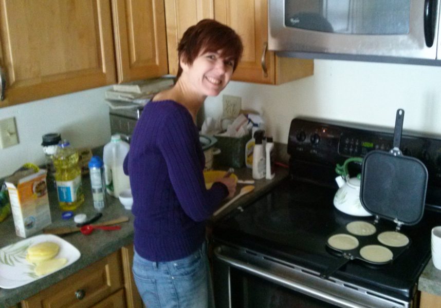 A few years later we came across “The perfect pancake maker, version 2” and got it for Nancy as a gag gift. She had not used it at all and had basically given up on the whole idea of making edible pancakes. Imagine my surprise when I walked into the kitchen to find her hard at work whipping up some pancake batter. Rayann and I gathered in the kitchen to cheer her on and were thrilled to watch the results. It was even better to sit down and enjoy “Perfect Pancakes”.